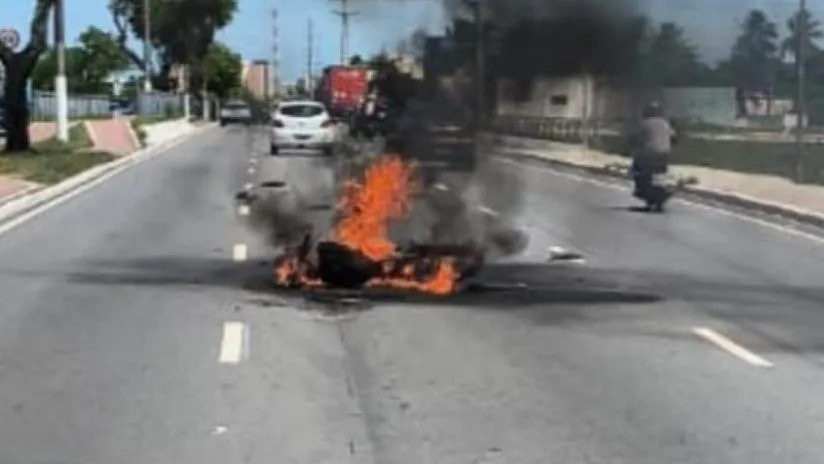 Uma motocicleta pegou fogo no início da tarde desta terça-feira (24) na Avenida Presidente Tancredo Neves, nas proximidades da Maternidade Nossa Senhora de Lourdes, no bairro América, em Aracaju (SE).