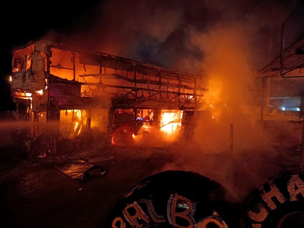 Um ônibus interestadual pegou fogo após um princípio de incêndio enquanto trafegava na rodovia BR-101, no município de Nossa Senhora do Socorro. O caso ocorreu na madrugada desta segunda-feira, 6.