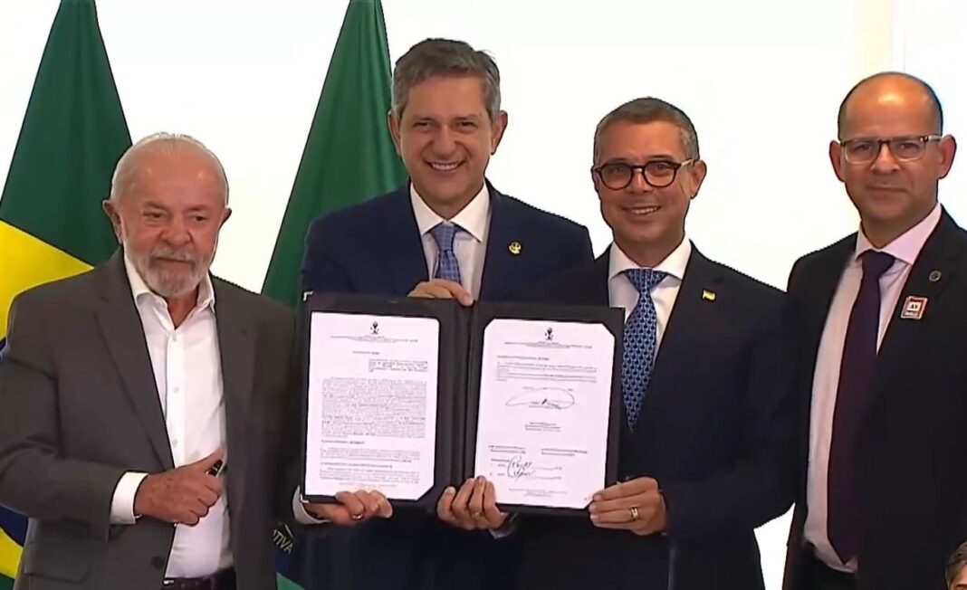 O presidente Luiz Inácio Lula da Silva firmou, nesta quarta-feira (15), em Brasília, uma série de ordens de serviço voltadas para obras estruturantes em Sergipe, consolidando mais um movimento de aproximação com o governador Fábio Mitidieri e o senador Rogério Carvalho.