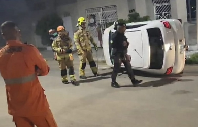 Um carro de passeio capotou na madrugada deste domingo, 19, na Rua Marizete Santos Costa, no bairro Marcela, em Itabaiana, mobilizando equipes de resgate.