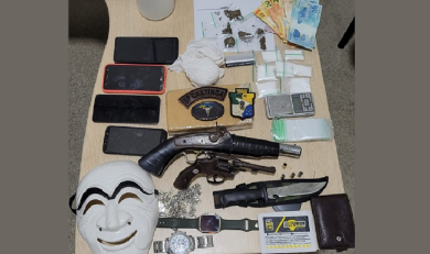 No interior da residência, os policiais apreenderam 122 gramas de cocaína, 615 gramas de maconha e 45 gramas de crack, parte das substâncias já fracionadas e prontas para comercialização.